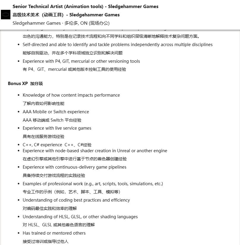 作为高级技术美术师,新员工将在Sledgehammer Games位于加拿大多伦多的工作室担任技术美术团队的一员,负责构建、交付和支持美术工具、工作流程及资源,确保美术师和设计师能够快速将内容与功能集成到游戏中。