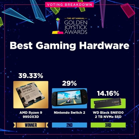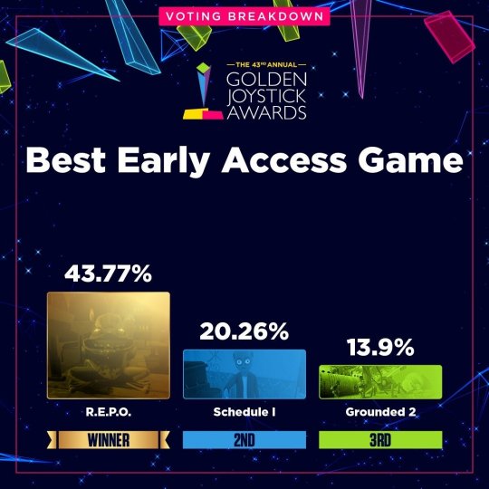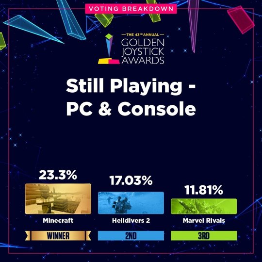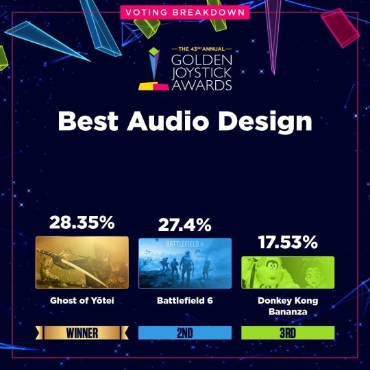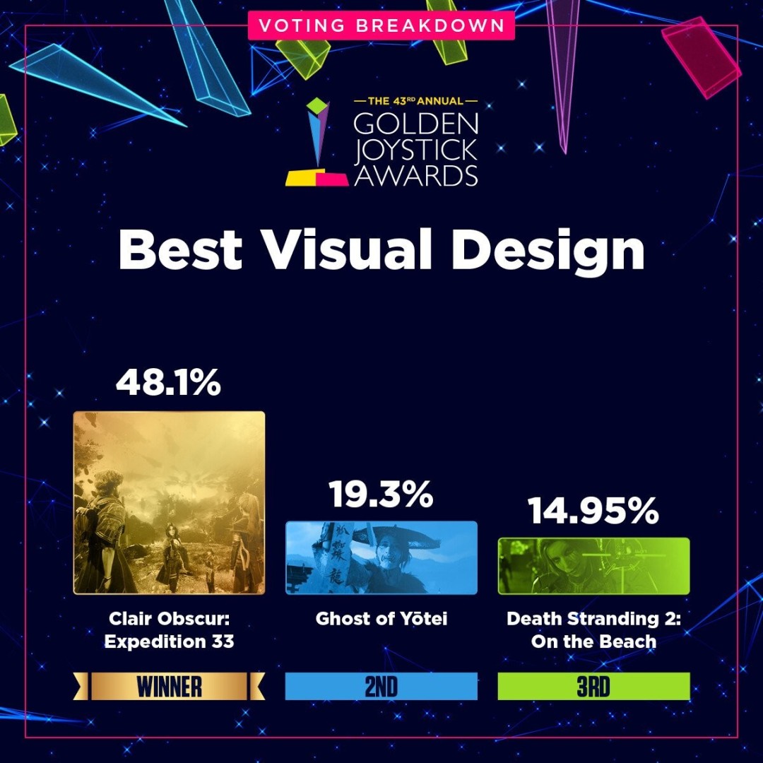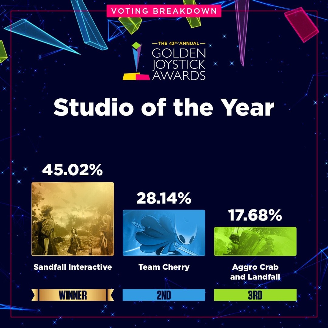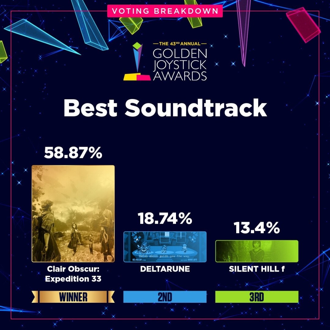 数据显示,部分获奖作品以绝对优势胜出,而另一些奖项的角逐则持续到最后一刻。最受热议的结果之一来自“最受期待游戏”类别——《GTA6》与《巫师4》的得票率仅相差不到2%,分别为18.03%和16.68%。据主办方透露,由于某个阶段两款游戏的票数曾急剧接近,团队甚至已开始为可能出现反转结局做准备。