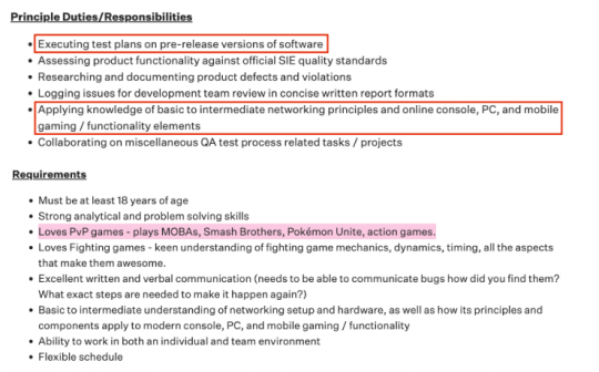 职位描述中"在软件预发布版本上执行测试计划"的职责说明,明确显示该项目已进入开发后期阶段。招聘信息同时指出该游戏将面向移动设备、PC和主机多平台发布,这与索尼拓展移动游戏市场的整体战略相符。