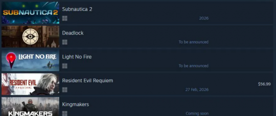 随着公布后讨论度持续升温,《生化危机:安魂曲》已进入Steam平台愿望单榜单的前五,当前位列第四,仅次于《深海迷航2》、《死锁》(《Deadlock》)和《无火之光》。排在第五名的是备受关注的中世纪策略射击游戏《Kingmakers》。