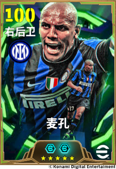 他是坐镇蓝黑军团右路的桑巴铁骑,也是梅阿查三冠王伟业中不可或缺的边路飞翼。球场上的他,既能以强壮的身体野蛮推进,内切抽射轰穿球网;也能高速回追,用充满侵略性的铲球绞杀对手的进攻!在蓝黑军团的巅峰岁月里,他为球队立下赫赫战功,国际米兰联赛三连冠和赛季三冠王的光辉荣耀,离不开麦孔在边路的鞠躬尽瘁!