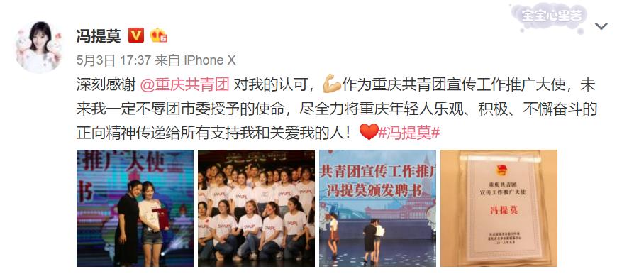 众所周知,斗鱼直播刚刚在武汉举办的直播节在网络掀起了又一轮直播狂潮,线下三天累计入园人次达52.18万、线上观看人次超2.3亿,无一不印证着斗鱼直播恐怖的粉丝基数和无与伦比的行业影响力。 在此次斗鱼直播节中,一个细节令广大粉丝记忆深刻,那就是那病上阵的冯提莫,在演唱几首歌曲之后就匆忙离开,随后在微博上也向粉丝们表达了歉意。此后冯提莫的微博向大家透漏了在直播节当天的去向:返回家乡重庆,参加重庆团委活动,担任了重庆共青团宣传工作推广大使,从网红主播秒变共青团代言人! 据重庆共青团相关负责人介绍,斗鱼主播冯提莫向上向善、乐观积极的公众形象成为了许多年轻人为之学习的榜样。重庆共青团也意在通过主播的影响力传递网络正能量,同时也映射了斗鱼直播平台一直致力于强大、积极地正能量的传播。 不忘初心 斗鱼直播积极引导社会正能量 以刚刚结束的国际武汉斗鱼直播节为例,舞台上的精彩和舞台下的斗鱼志愿者们,所进行的正能量传递相得益彰。此次直播节,斗鱼直播带动了一大批青年志愿者积极向善,活动期间有数百名斗鱼青年志愿者参与到活动中,从事文明引导、秩序维护等多个岗位中,在无形之中传递着满满的正能量精神。 早在3月末,斗鱼直播平台主播蓝胖儿和颜小波,开启了“战鼓阵阵”系列网络直播第三站的直播活动。斗鱼正能量主播走进西部战区某陆军部队,为大众直播军旅生活,展示军人形象。此举在网络上掀起了关于直播正能量的讨论,也更加让人们体会到,正能量直播的重要性和必要性。据悉,斗鱼直播此次进军营直播活动,累计收看人数超过两千万人,为社会带来了积极的正面影响。 此外,斗鱼直播正能量频道在4月进行了武汉市“道德模范”代表人物系列直播,由斗鱼平台的党员主播对“全国道德模范”刘培、董明、杨小玲,“武汉好人”侯立新进行直播采访,通过直播让网友感受正能量,获得了网友的广泛好评。 承载责任 斗鱼直播持续创新社会责任模式 无论是此前的“道德模范”代表人物系列直播,还是主播进军营、平台主播担任共青团宣传工作推广大使,斗鱼直播一直依托着具有众多粉丝的平台主播,向社会展示着一家具备企业社会责任的平台形象,并借助正能量的直播内容,为社会树立良好的榜样,以切身行动引领广大青年朋友投入到传递正能量的行列中。 平台越大,责任越大,斗鱼直播随着其自身不断的发展壮大,不再简单的着眼于娱乐性直播,而是也不断地通过创新直播形式,将更多的正能量内容呈现在广大观众面前,引导观众的正能量属性的塑造。 编辑:叶子猪小秘书