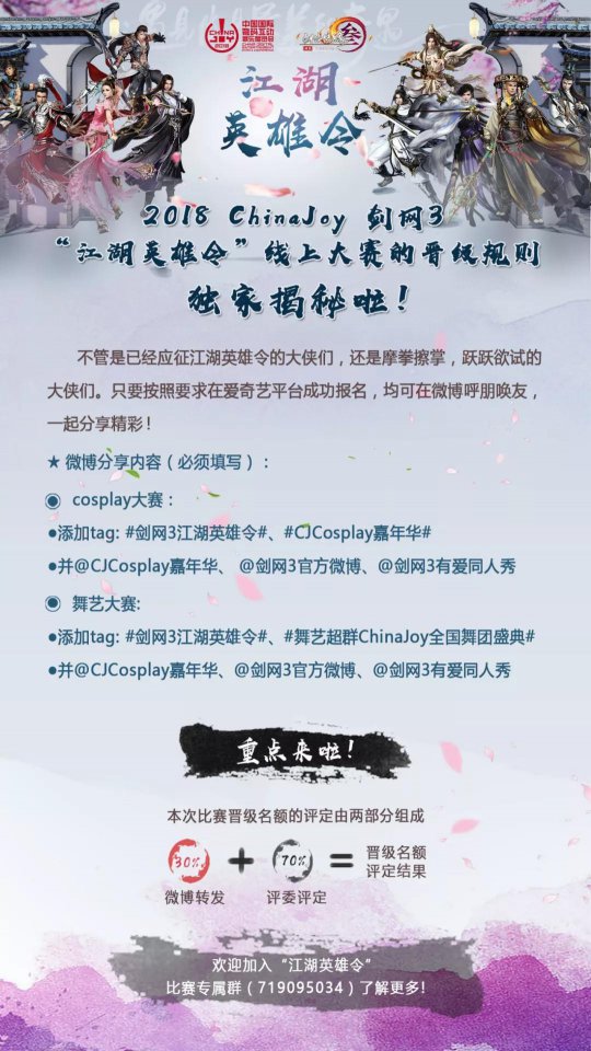2018 ChinaJoy 剑网3“江湖英雄令”线上大赛的晋级规则独家揭秘啦!