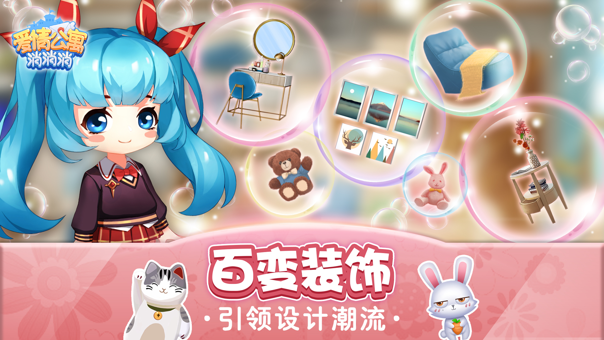 万众粉丝翘首期盼的都市情景剧《爱情公寓》第五季终于播出了,在剧的第一集就有四对情侣终成眷属,给了大家一个非常圆满的结局!随着《爱情公寓》的圆满,由《爱情公寓》电视剧正版授权匠心打造的休闲手游《爱情公寓消消消》家装版要和各位见面啦! 【欢迎来到神奇世界】 欢迎来到《爱情公寓消消消》的神奇世界,赶紧来看看必不可少且深不可测的游戏背景吧!故事的剧情从咱们的男主人公和女主人公发现了一部非常好玩的VR游戏——《爱情公寓消消消》开始。这是一款可以带领人类走向建筑巅峰的神奇游戏,从此男女主人公在这里展开了一场追求建(无)设(厘)真(头)理的游戏不归路。至于男女主人公到底是什么身份呢?只能悄悄该诉你他们的小名是“小贤”和“霏霏”~更多的故事还请到游戏里仔细摸索哦! 【人物换装公寓家装 新版上线】 此次版本更新除了剧情和人物的调整外,还从竖屏操作改为了横屏操作,为的是让大家能够更好的体验换装和家装!在这里你可以布置出各种风格的精致家装,想怎么装扮都随心而定!一套公寓有若干房间,每个房间包括装扮过的都可以随时点击查看或者重新装扮,目前有温暖清新的3601客厅、豪华舒适的大床卧室、复古简约的开放式厨房、每个女孩子梦想的换衣间等房间等着你! 在这里,你还可以对男/女主人公从头到脚进行装扮!比如学生装、职业装、王子装、精灵装、仙女装等等等等,还有好看的翅膀可供选择!你梦想中的房间和服饰是什么呢?快来《爱情公寓消消消》实现它把! 【趣味三消 货币拿到手软】 在《爱情公寓消消消》中有三种货币,分别为“体力”“游戏币”“家装币”。体力可以用来进行消除闯关,游戏币可以用来购买角色服装,家装币可以用来装饰房间,想要获得游戏币和家装币就要来闯关消除哦! 《爱情公寓消消消》中设置了超炫酷的关卡版面,有趣烧脑的消除环节,让Q萌的元素燃爆手指!除了闯关消除之外,我们还未大家准备了有趣的活动和任务,让你拿货币拿到手软!你还在等什么?火速前往官网下载游戏吧!关注《爱情公寓消消消》微信公众号,了解游戏最新情报和福利信息! 编辑:叶子猪小秘书