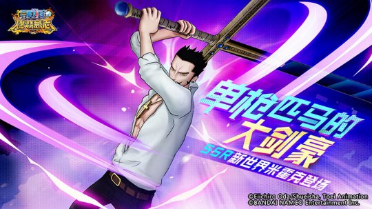 鹰眼米霍克作为最强剑客,他拥有刚柔并济的斩击。他不仅可以斩断一切事物,甚至能将巨大的冰块断为两截。另一方面,他也能轻易化解敌人的攻击,甚至改变子弹的弹道。在游戏中,SSR新世界米霍克同样是一个攻防兼备的角色。他背上的剑只要轻轻一挥,就能发出超强的破坏力,他的“黑刀·一闪”技能更是可以给敌方造成巨大伤害,一击破敌。同样,他也是防御好手,他能轻易封锁对手技能,加强自身防御,是一个非常值得培养的SSR。