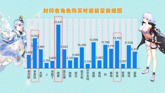 其中也有非常有趣的数据,每日”拆快递“数量最多的封印者角色要属缇娜了,她每天会有700多件时装包裹。而紧随其后的封印者分别是李瑟钰和未来,她们每天分别会收到500件和450件的时装包裹,人气女孩非她们莫属了。