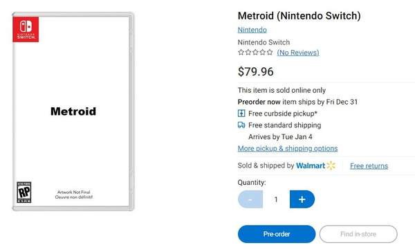 最近,在沃尔玛加拿大网上商城出现了一款面向Switch平台的银河战士游戏产品,发售日标定为2021年12月31日,这很明显只是一个占位符,一般来说用于展示年内发售的游戏。考虑到E3即将到来,任天堂很有可能会在这段时间通过直面会的形式正式公布银河战士35周年相关纪念活动和游戏作品的消息。结合之前传言称一款2D玩法的银河战士新作早已开发完毕,说不定SFC平台的《超级银河战士》有望在Switch平台重制。