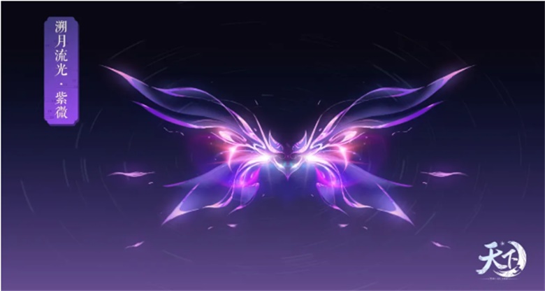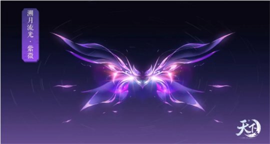 而【溯月流光·紫微】则一如其名,以神秘诱惑的紫色为主色调,象征着人们对深邃星空的想象和追求。“紫”自古以来便得帝王青睐,这对翅膀的色彩和光芒也带有华贵之气,紫光流转间,仿佛流星沿着银河闪动。
