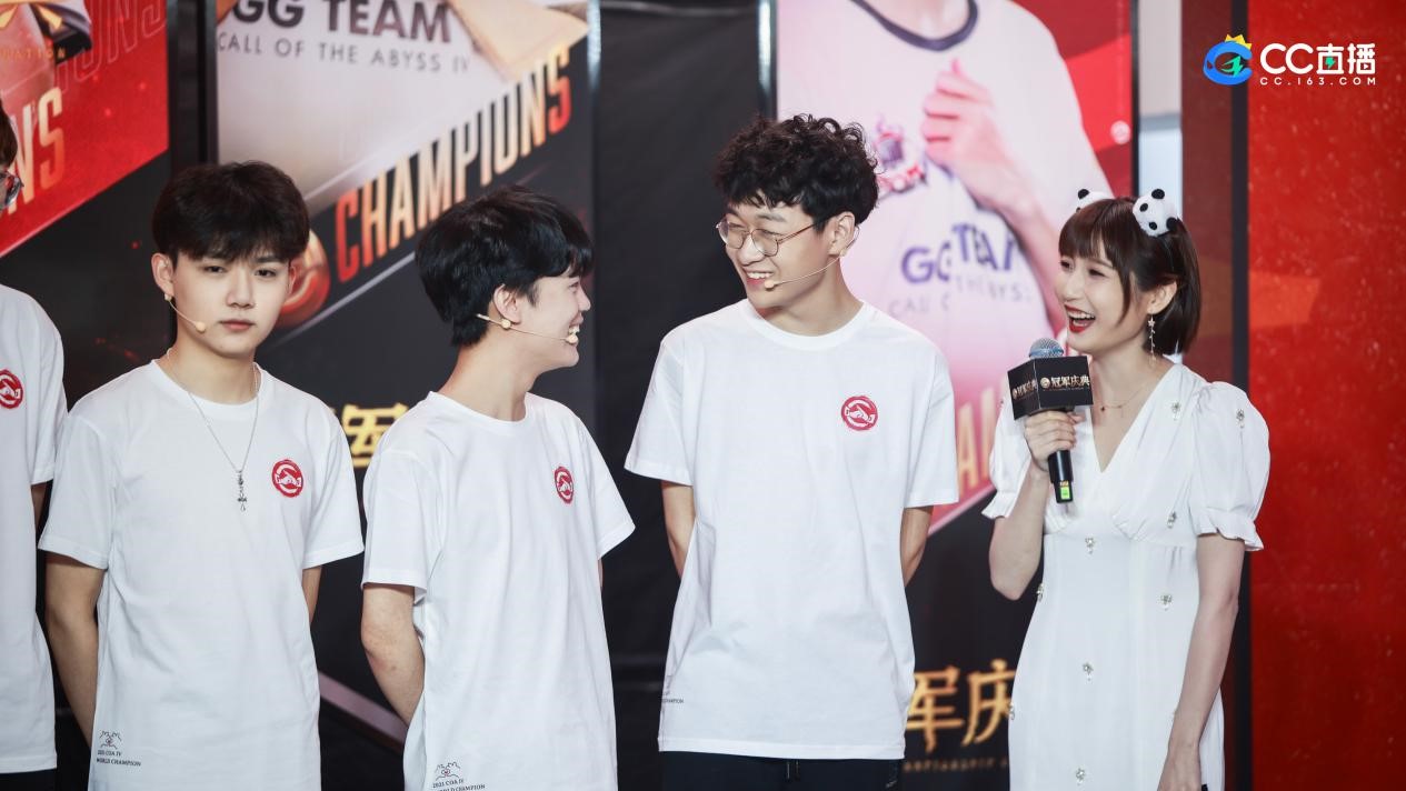 当天,GG 战队全员身着统一特制冠军T恤高能亮相,不仅与现场和收看网络直播的观众一起回顾了总决赛夺冠的心路历程,而且还在现场与粉丝进行趣味互动,接受粉丝提问,掀起了阵阵尖叫声。此外,观众前往 CC 直播观看,有机会获得《第五人格》皮肤、战队周边、选手签名等精美礼品。随着这场战队与粉丝同欢的庆功宴成果落幕,以及获得成都宽窄文创产业投资集团的赞助,也让外界看到了 CC 直播近年来在电竞赛道的迅猛发展。