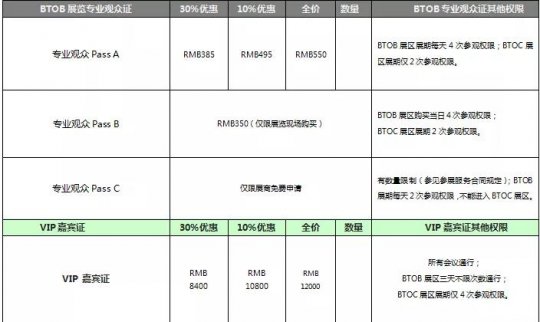 如需购买10张以上证件,可直接联系相关工作人员(联系方式参见文末)索要并填写报名表,提交后工作人员将发送付款通知,上面有银行汇款信息,请在接到组委会的付款通知后7个工作日之内支付全额费用并于付款后通知组委会查收。如您的购票满足使用商务配对系统的权限,工作人员确认收款后将一并发送BTOB商务配对系统用户名和密码。对购买证件的一般听众或者观众,我们会发送您领证二维码,届时请携带您的名片和身份证到现场出示二维码领取票证。