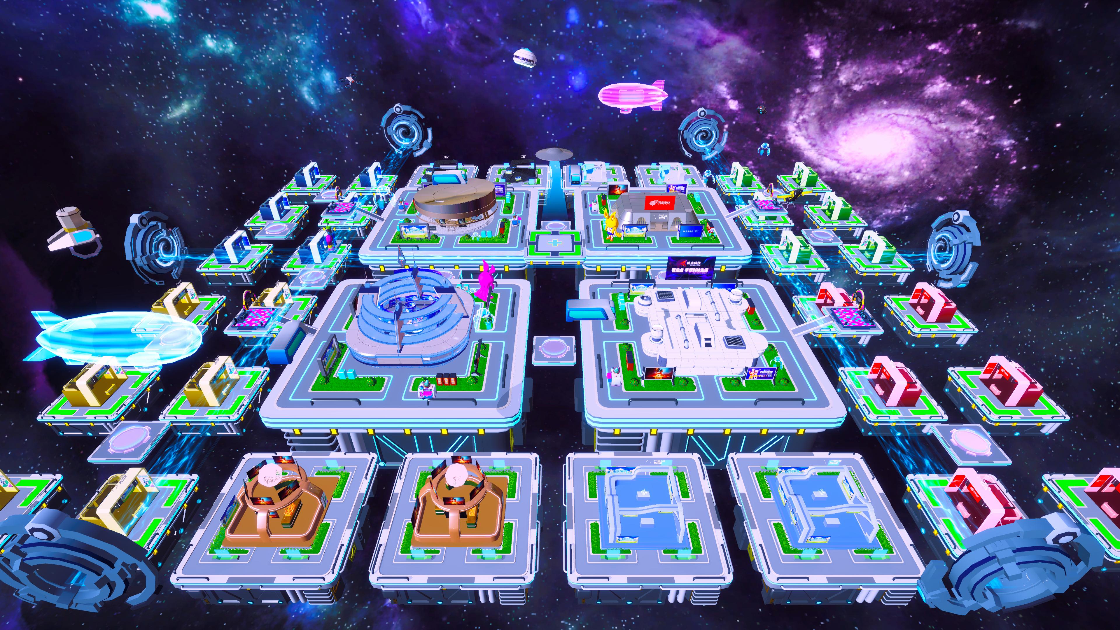 MetaJoy元宇宙世界中,以MetaJoy主城为中心,玩家通过传送门与人间大炮装置,可轻松抵达环绕在主城四周的六大主题展区。六大主题展区,各具特色、紧密环绕、蔚为壮观。今天为大家揭晓的是:以浩瀚宇宙为场景、科幻风十足的“E-A区”:硬件主题区。