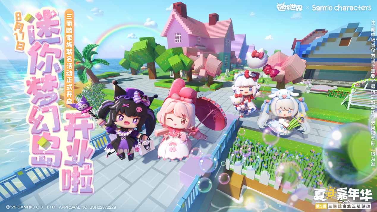 推进《迷你世界》IP战略持续深入,是迷你创想集团核心战略之一。在此次版本联动中,迷你世界敏锐的抓住三丽鸥家族系列IP形象的精髓,在“萌”这一突出特质上尽情发挥,同时沙盒游戏的高自由度玩法与用户共创的平台属性,让《迷你世界》与三丽鸥IP家族深度融合,打造夏日梦幻小岛,将IP能量最大化。