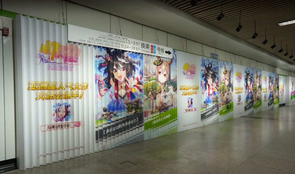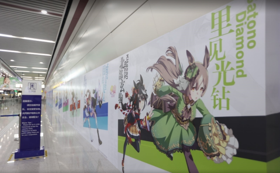 为庆祝《闪耀!优俊少女》开服以来最重大且最受玩家期待的游戏版本更新,10月2日起,《闪耀!优俊少女》的「北部玄驹」离开特雷森学园,从虚拟走入现实,闪现上海人民广场地铁站和重庆观音桥地铁站,还有新版本UP「东海帝王」和「目白麦昆」等动画人气角色出没在整个地铁空间。
