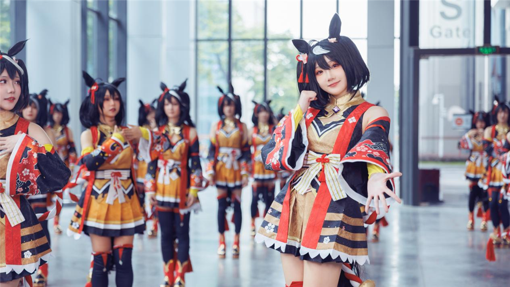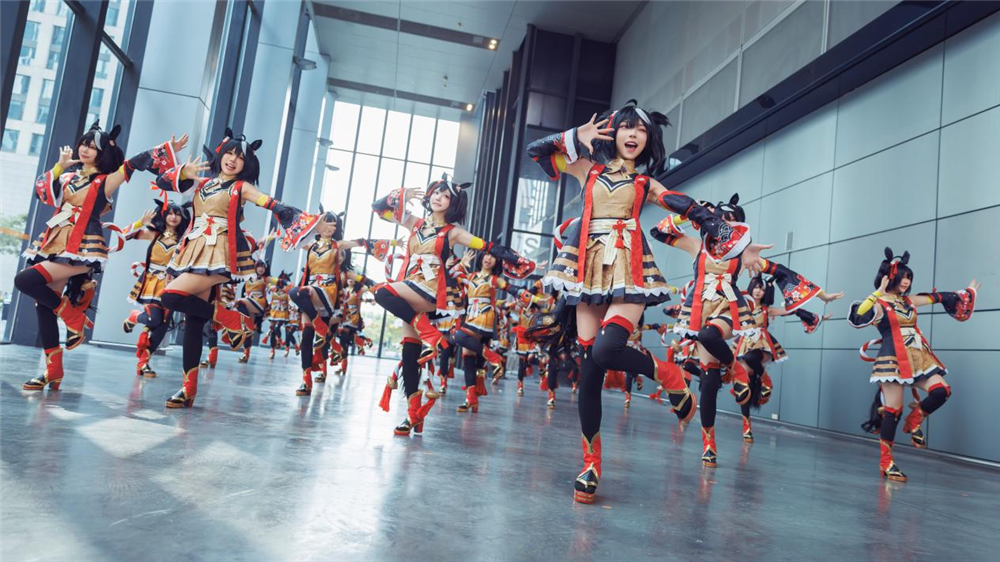 10月2日当天,30名coser在展会现场组团北黑马儿跳快闪,其中有舞小喵、菌儿、瓜希酱、花崎Makura、大肉丸Amiee等多名头部coser助阵,绝对是广州琶洲会展中心当天最靓的表演,如果有小伙伴没能在现场欣赏到30个北黑快闪风采,可以前往B站UP主特雷森食堂动态观看完整快闪视频。