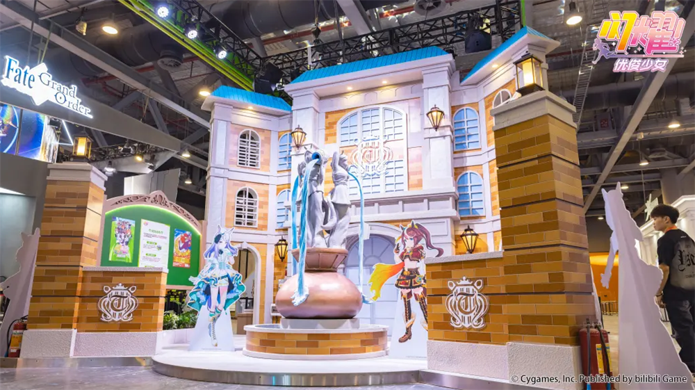 本届CICF漫展,《闪耀!优俊少女》携游戏全新版本知名助人大将「北部玄驹」参展,现场建有北黑和光钻的协助卡门,主舞台则是特雷森学园与超还原的三女神像,这在整个漫展期间吸引了大量玩家前往展台玩耍。