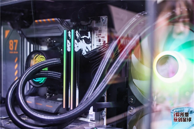 在玩创星球的核心展区,七彩虹打造了开放式硬件墙,左侧悬挂iGame GeForce RTX 5080 Vulcan OC与RTX 5070 Ti Vulcan W OC显卡,真空电镀装甲与LCD智屏构成光效交响;演绎多元美学——Advanced系列的赛博朋克金属背板、Ultra系列的波普艺术涂装、COLORFIRE MEOW「RTX 5060橘影橙」萌系治愈风,刚柔碰撞间诠释性能即艺术。中部矗立主板图腾:iGame Z890 VULCAN黑/白火神以16+2相105A供电模组释放旗舰算力,碳纤维散热装甲如机甲战袍;其下方CVN X870 ARK方舟主板 以舷号蚀刻军工铝罩,专利快拆卡扣实现徒手更换显卡的革命性体验。在右侧观众可看到包括iGame影II内存在内的各类存储硬件,在展架的零距离交互中,感受七彩虹重构硬件美学的硬核哲学。