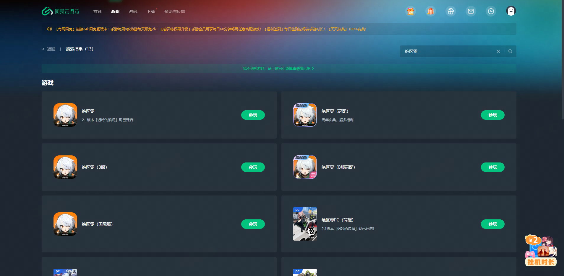 浏览器访问网易云游戏官网(https://cg.163.com/)→ 搜索“绝区零” → 点击“秒玩”。
