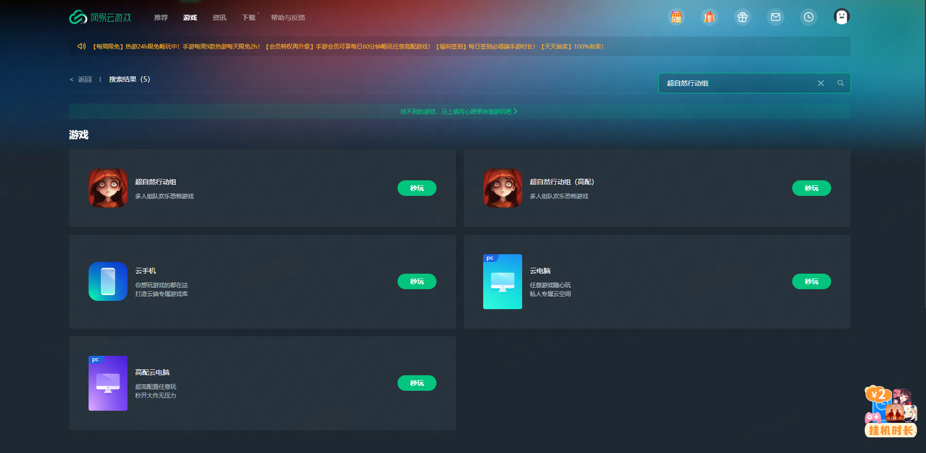 电脑端:访问官网 → 搜索“超自然行动组” → 点击“秒玩”。