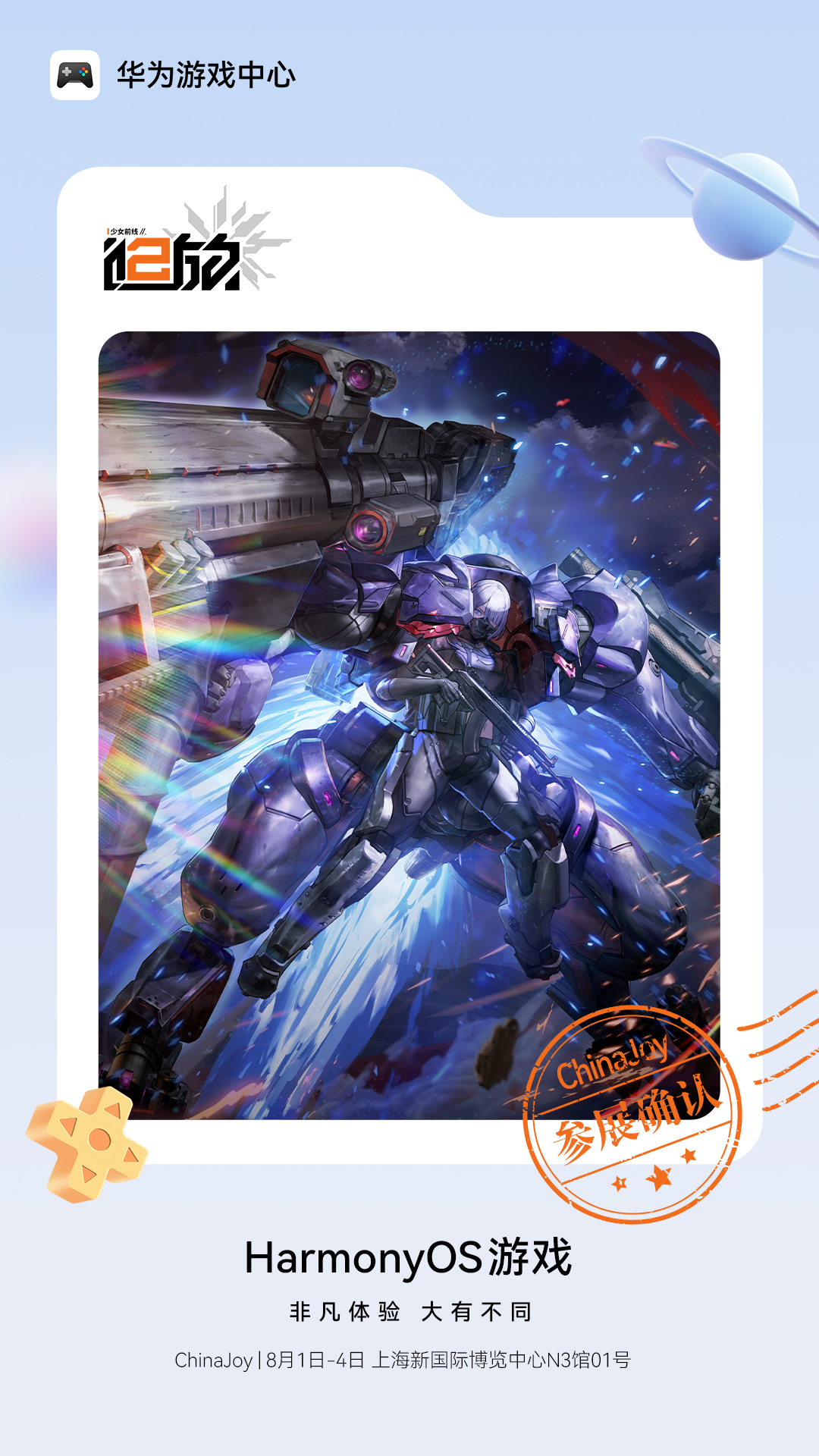 8 月 1 日 - 4 日,上海新国际博览中心 N3 馆 “鸿蒙游戏” 展区,《少女前线 2:追放》期待与各位玩家相遇,一同探索二次元游戏与前沿技术的融合新体验。