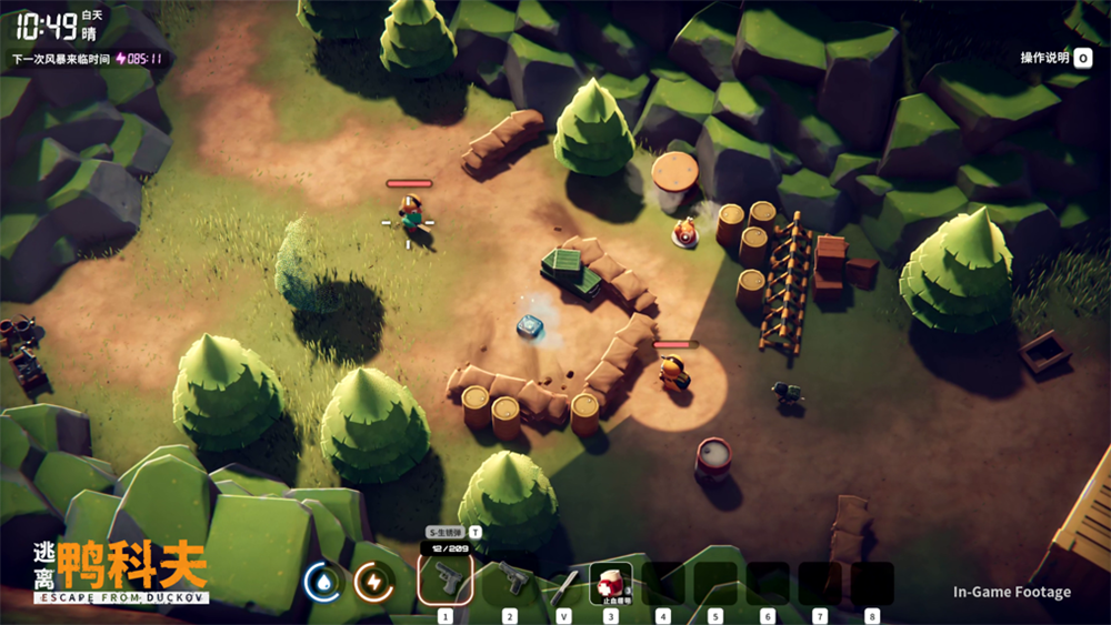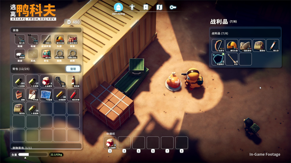 《逃离鸭科夫》是一款以可爱搞怪的鸭子为主角的俯视角PVE撤离射击游戏。游戏的核心玩法围绕“搜刮、战斗、撤离”展开,玩家将扮演全副武装的“战术鸭”,深入危机四伏的战场,获取物资,发展壮大自己的生存基地。与对抗性强的3D写实搜打撤离游戏不同,《鸭科夫》采用了鲜明的3D卡通画风,敌人设计也充满卡通趣味,为硬核玩法披上了一层轻松幽默的外衣。
