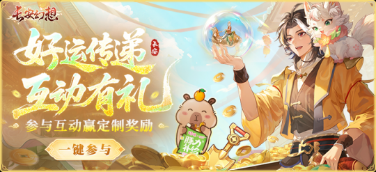 另外在【长安幻想】官方用户社区、公众号以及游戏内福利同样拉满。社区活动、抽奖活动不停歇,是哪位大大能抱金而归?快来参与,说不定就是你~具体开奖时间及抽奖规则以各平台内容为准。