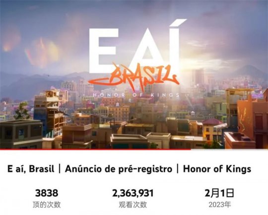 从这儿就能发现,借助HoK出海的契机,《王者荣耀》这款早已在国内获得现象级成功的产品,正在全球范围内打开新的局面。而它之所以能收获海外用户的认可,正是因为这些扎扎实实的适配工作,让游戏本身与它所承载的多元文化渗透到全球玩家的体验之中。这些看不见的“软实力”,让一款游戏跨越地域,走进人心。二、步步为营,扎根世界HoK在全球生态上的发力其实并不突然,而且在我看来,发力时机也挺有门道。甚至站在更宏观的视角下,你会发现《王者荣耀》出海的每一个节点都顺应了当时的市场趋势。在2023年3月,腾讯选择将HoK带去了巴西,并且取得了非常好的效果。游戏还未正式上线,当地预注册玩家规模已经突破200万。上线仅一周后,注册玩家数量就轻松突破百万大关,并登顶当地免费榜。之所以将巴西列为第一站,此前团队曾做过一次解释:巴西是竞技手游的新兴市场,当地的直播、电竞文化都在飞速发展,令人印象深刻。也正因如此,当时HoK发布的多条CG都取得了不错的反响,其中《你好,巴西》仅在YouTube平台播放量就超过230万,后续以云缨、澜等英雄为主题的CG也吸引了众多巴西玩家的关注和好评。