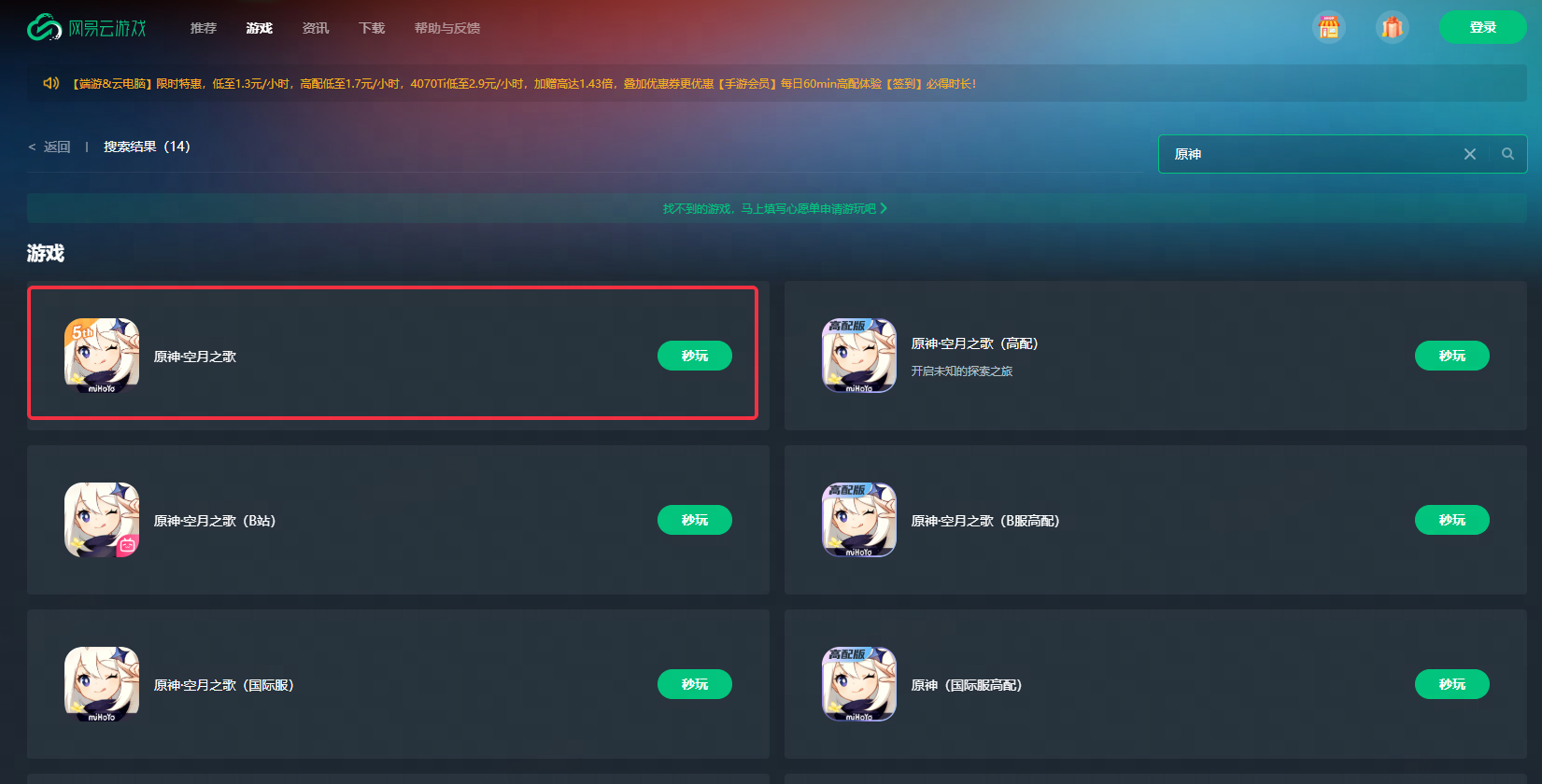 安卓用户:可在网易云游戏官网或APP内,搜索“原神”,即可免下载玩游戏;