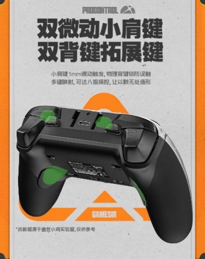 此外,G7 Pro手柄玩法大开,采用双微动小肩键+双背键拓展键,多键映射,多指玩法,操作细节碾压全场。