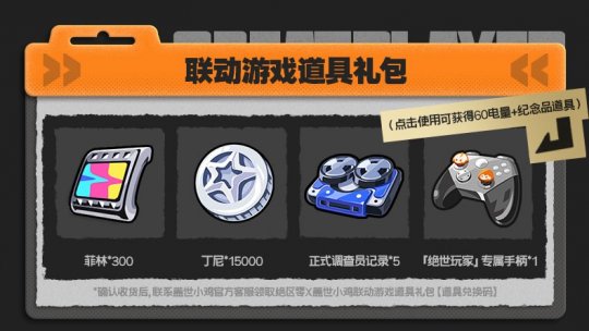 礼包道具包括菲林*300、丁尼*15000、正式调查员记录*5和「绝世玩家」专属手柄*1。