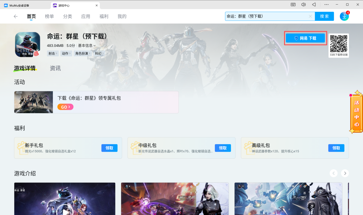 方法一:打开游戏中心或直接在搜索框搜索命运:群星,点击下载;