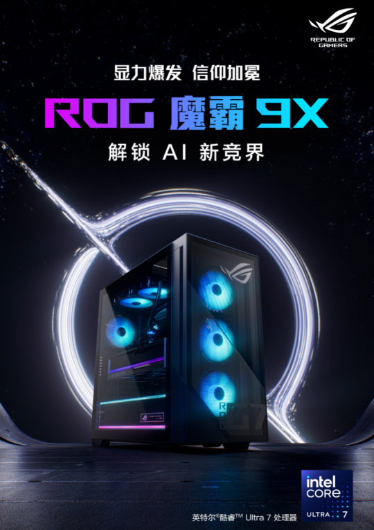 ROG魔霸9X搭载英特尔酷睿Ultra 7处理器265KF,8性能核+12能效核,20核心20线程,睿频至高可达5.5GHz,拥有66MB L2+L3缓存。全新Arrow Lake架构赋予其出色能效表现,内置NPU,能为AI计算、模型部署、绘画及视频生成提供算力支持,由内至外,带领玩家解锁AI新竞界。