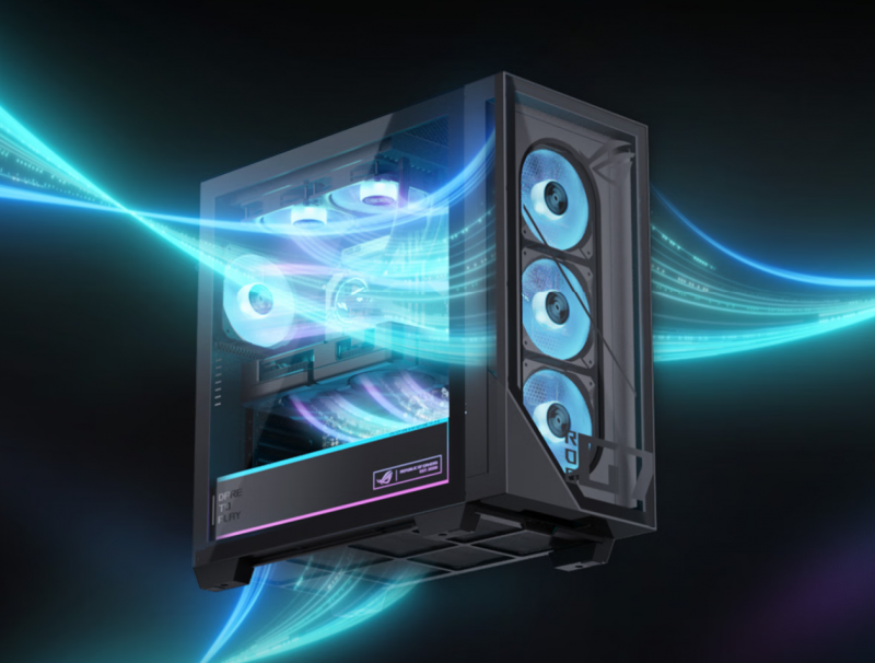 针对重度游戏体验、深度AI计算等高负载场景,ROG魔霸9X机箱内部采用240mm一体液冷散热搭配四枚环形动态轴承机箱风扇。强劲的散热组合可在机箱内形成贯穿式气流,配合前面板隐藏式进气口,热气排出更迅速。另外,风扇均支持Fan Xpert软件,使玩家可自定义转速曲线,手动调节风扇散热模式。