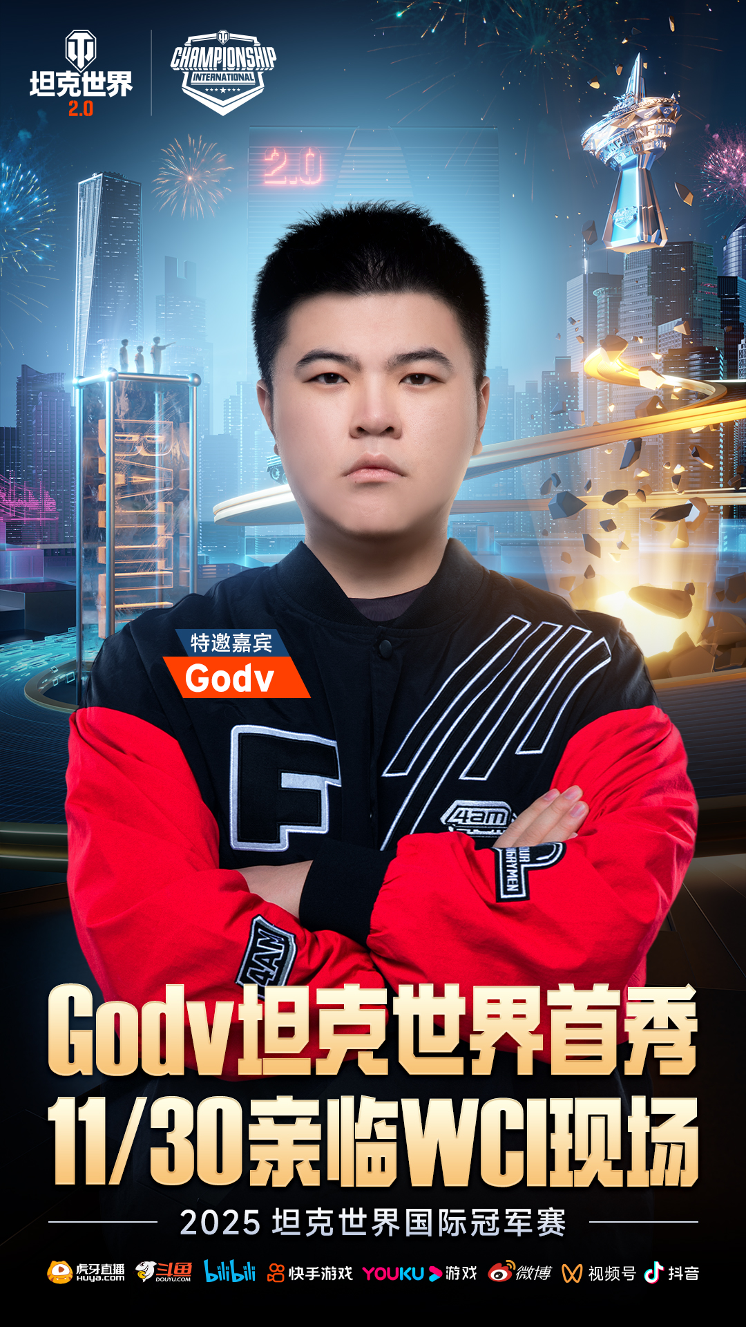 11月30日,明星嘉宾Godv(韦神)将惊喜现身赛事现场,与坦克KOL及战队队长共同参与签名互动。作为电竞领域的前知名职业选手,Godv的亮相或能满足电竞赛事粉丝的更多期待。