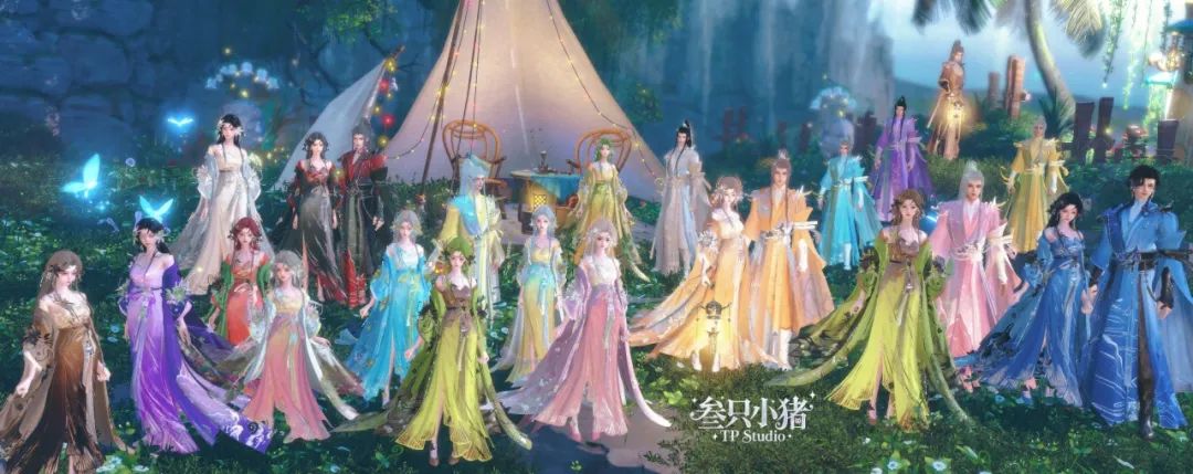 每逢三界上新的美丽永久时装,倩倩的身心都会愉悦起来,因为路上遇见的少侠都染得倾国倾城、倩见犹怜,三界都因才子佳人而分外绚丽了! 今日本倩受邀去少侠的筑梦家园时,更是直接被美了一大跳:竟有20多位少侠穿着配色大胆新奇的周年庆时装·玉澜椿风在童话森林里开派对!你你你你说这都是同一套时装·玉澜椿风吗?怎么能美出这么多种可能!倩倩再一仔细打听,原来这都是出自派对发起人兼染色大师“叁只小猪”的手笔! 这可不得了!倩倩赶紧去请出了组成“叁只小猪”的叁叁、猪猪和风筝少侠,向他们讨教一番染色心得,520倩倩必成三界最美的崽! 叁叁:我是叁只小猪的叁叁,来自转二灼灼其华,刚从狼转成奶妈。 猪猪:我是叁只小猪的猪猪,来自转二灼灼其华,刚从奶妈转成画魂。 风筝:我是叁只小猪的风筝,来自转一神雕侠侣,刚从奶妈变成奶爹。 在同一片三界“闯荡”的叁叁、猪猪与风筝,起初不过是偶尔产生交集、眼熟对方而已,像三颗在夜空中各自闪烁的星星。然而,随着彼此交往日益深入,她们渐渐察觉到彼此灵魂深处的共鸣,譬如:三人竟都是不折不扣的外观党,三人都喜欢尝试染色方案的无拘边界,三人都热衷在三界捕捉每一处令人心醉神迷的风景…… 这种不期而遇的相似,让三位少侠如同在茫茫人海中找到了灵魂搭子*2。从此,“叁只小猪”的友情如同破土而出的新芽,愈发茁壮。 同在转二灼灼其华,因此叁叁和猪猪最先一拍即合地成为了染色搭子,风筝的加入则让这个小团体彻底“放飞”——她带着自己的独特视角,为叁叁和猪猪染色注入了新的想象力。 虽然倩女早就推出了绘彩玩法,但由于绘彩需要大量材料,导致她们创作灵感被限制了不少。直到周年庆时装开放了“免费无拘绘彩”,一切悄然改变。免费无拘的机制,点燃了叁只小猪创作的灵感。 以前少侠们总想着不低的试错成本,染色也偏向于保守化的审美,很少能将自己大胆的构思付诸实践,但现在却能为了一束光影效果去推翻整套配色。她们开始尝试过去不敢设想的方案:一套衣服叠加多种渐变,撞色挑战视觉极限,甚至试图用配色放大哑光或亮面材质的差别。 (少侠们产出的部分染色方案) 在创作里,三位少侠对色彩、场景、氛围等元素都充满热情与探索欲,并共同参与到每个环节。有少侠率先提出大胆的色彩组合构想时,大家的灵感便瞬间被点燃,让色彩在想象中肆意碰撞,没有人会为团队的方案设限,都沉浸在尝试新色彩搭配的兴奋中。 当色彩方案初步成型,叁只小猪又会一起琢磨如何让这些色彩在不同场景中绽放魅力。三位少侠就像一群怀揣魔法棒的创作者,没有固定分工,只有对创作的无限热爱与执着,共同编织出一个个充满奇幻与惊喜的作品。 少侠们也向倩倩从多个方面展开介绍了他们的创作逻辑:在色彩运用上,将创作重点放在色彩渐变与整体调配。期望通过更灵活的色彩运用方式,大胆玩转色盘,积极尝试多种撞色组合,以丰富作品的视觉效果,突破传统色彩搭配的局限,为作品注入新的活力与魅力。 (考虑大胆撞色而产出的【海盐柠檬】染色) 材质选择方面,鉴于深色系在展现服装质感上具有独特优势,此次创作少侠们也选用了不少深色系配色,希望以此突出衣服的丝绒质感,使服装在视觉上更具品质感与高级感。 (【苹果森林】经典的红绿配色,绿色用了深绿的搭配更能体现丝绒质感,圣诞节穿绝对适配) 特色呈现上,叁只小猪偏向于延续以往创作中的趣味点,在完成服装染色后,热衷于寻找各种倩女场景进行拍摄,捕捉美美的画面。她们尤其注重在不同光线条件下观察同一件衣服所呈现出的不同效果,力求通过这种方式为自己的无拘绘彩增添新的感染力。 (赛博系列的【薄荷生巧】,黑色系打底,加上粉蓝撞色的冲击,让人感觉眼前一亮,置身于科幻世界中,是少侠们参考酆都而产生的灵感) 深色丝绒的华贵、浅色薄纱的灵动、金属配饰的冷冽……三人对放大时装优点的执着近乎苛刻。周年庆时装男装飘带的流动光影、女装背后束发飘带的设计和各种刺绣细节都让她们有了更多发挥空间。她们偏爱“危险的美丽”,拒绝“安全牌”,大胆尝试红绿撞色的圣诞丝绒、粉中带绿的蜜桃乌龙、深紫配纯黑、青碧叠桃红……这些在现实中极易翻车的组合,却被他们赋予了灵动感。 (【蜜桃乌龙】,腰间和流苏搭配了一点亮绿色做点缀,去掉甜腻同时增添了一些清爽,少侠们在同一个颜色粉色上下了很多功夫去做层次,在这基础上还能延伸许多不同的其他浅色搭配) 江湖不只有杏花春雨,也有霓虹夜雨。是的,三界本身就是最大的调色师。那些曾被少侠匆匆掠过的风景,在他们眼中皆是染色的灵感源泉:周年庆主城雾气缭绕的角落、筑梦家园的海浪与夕阳,甚至酆都幽暗的灯火,乃至少侠们日常接触的事物,都成了他们的调色盘。同一件时装在晨光与暮色下会呈现截然不同的质感,她们就像在追逐光的魔术。于是乎,那些有想法但未曾下手的方案,都因为本次周年庆的免费无拘染色成了她们新灵感的跳板。 (少侠受周年庆主城雾气启发而产出的 染色方案【玛格丽特】) 聊到这里,倩倩也很好奇,三位少侠以前似乎会更多地偏向产出女款的染色方案,但此次少侠们产出的男款染色方案也格外丰富,也是因为无拘染免费的原因吗?提到本次时装的设计突破,叁叁也是瞬间兴奋:“因为这次周年庆的男