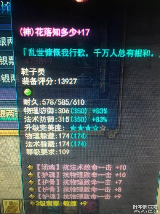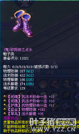 致命情况下伤害翻倍,作为高效率的输出,都喜欢在原有的高攻击基础上再把致命给堆起来,一旦打出致命,人头美滋滋。 可有时候遇上堆了抗致命的敌人,就感觉自己的致命好像假的一样。什么样的抗致命有这种体验呢?像这样的行不行呢? (图片出自:惜靥_) 不,太少了,那这样呢? (图片出自:谁晓阑珊) 属性全是抗致命,强迫症看着真舒服,只是这样的腰带却很尴尬。法术系的攻击有各种元素花里胡哨,就算不走致命路线也还有别的路子,抗法术致命只是替你关上了虚掩着致命的门,如果自身元素抗不给力,抗致命也很无力。 (图片出自:欧皇族) 而物理系的攻击却没有那么多花样,想要提高伤害除了堆物攻外基本就只有堆致命这条路。如果在其他条件都不错的情况下,像这样的鞋子还是能起到作用的。 但抗致命也不是万能的,它只在敌方打你出致命时减轻你的痛苦,并不是无痛。若是自身血防不够硬,抗致命也是假的。 |
