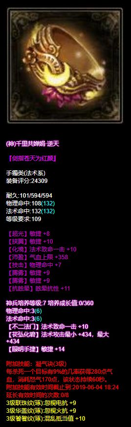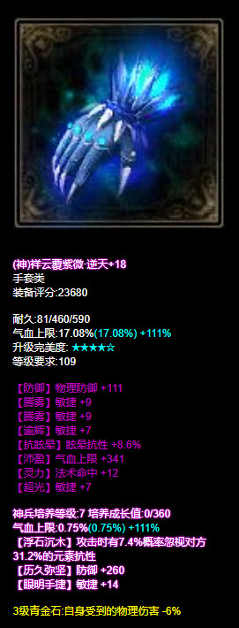4敏捷+晕抗百分比的手套 打人真是一下一个准 逆天让基础属性提升 满气血上限再加上气血上限 这厚厚的血条让人看了无比舒适