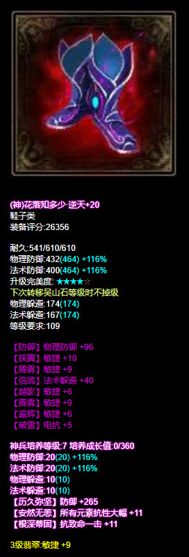 不修+敏捷+根骨+物躲 打上4级石之灵善根生 让衣服抗揍能力更强 谁还敢喊你一声脆皮?