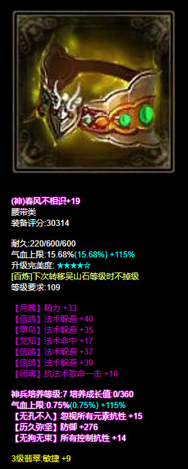 齐刷刷的4法躲+法术命中 打上3级翡翠敏捷+9闪躲速度这么快 只要扎紧这条腰带 别人就打不到你啦