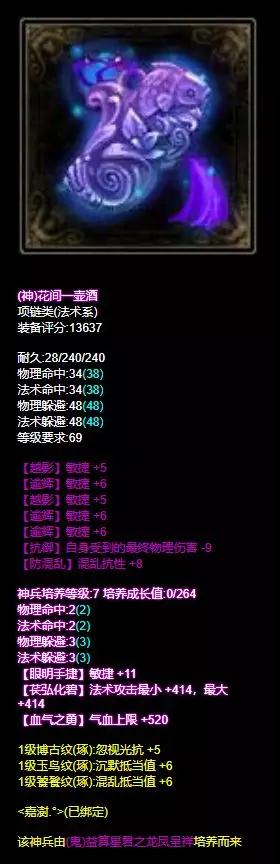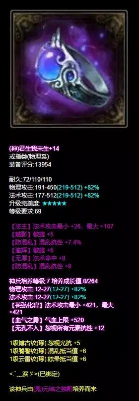 你体验过还没有出手 就被混得团团转然后原地死亡吗 反正倩倩这辈子都不想和魅者交手了 但是今天!!倩倩发现一个大佬 高敏捷,一身混抗百分比!! 魅者根本还没混住就被他的狗咬死了 是时候展现出这位大佬的装备啦 昵称:嘉澍.° 等级:69级职业:异人服务器:[灵岛仙踪]帮会:翩翩到此间 (以下数据更新于梦岛2019.10.10) 武器 固定双最大再加一条最大+混抗百分比 细细一算最大法攻+30% 这样的暴力输出倩倩完全不敢说话 再打上石之灵大势至 看看,这是一个69异人该有的输出吗 虽然它是一把拥有方士之魂的武器 但是仅凭这把武器的输出 倩倩就想要泳有它 布甲 齐刷刷的6法术躲避 看了真是让人倍感舒适 如果把最后一条混抗换成法躲 那就更完美了 鉴定技能:定身术 击中时有几率使目标定身10秒 这还是一件带控制的衣服 不愧是大佬的行头 布盔 双敏捷+固定混抗百分比 打上石之灵观自在 能防能躲又有抗性 一顶保命安全帽子稳稳落在头上 手套 5敏捷+混抗 一看大佬就是身手敏捷之人 打人一定没有失手过吧 鉴定技能:金刚不坏身 使队友处于物理免疫 输出之余还能兼职辅助 话不多说一波666走起先 腰带 固定混抗百分比+双法躲 满气血上限洗出神赐基础+50% 这血条厚度倩倩不敢想象 还带上这么高的抗性 倩倩+腰带=爱情,明白? 鞋子 双法躲+双敏捷 +混抗+固定混抗百分比 现在连鞋子的词条都要成双成对了吗 打上翡翠敏捷+9 穿上之后速度七十迈 连逃跑的心情都是自由自在 项链 整整齐齐5敏捷+混抗的项链 这么高的敏捷 大佬打人一定没有失手过吧 手镯 8敏捷+双混抗+混抗百分比 高敏捷+高混抗的手镯这显然就是针对魅者的配置看来大佬对魅者防得很紧嘛 戒指 4敏捷+双混抗百分比+双混抗 大佬是怎么做到洗出如此一致的戒指的 这双混抗百分比的戒指 真是好看到让人流泪 这位69的异人大佬 主要走的的是敏捷+混乱抗性路线护具和首饰上的多条敏捷和混抗百分比 在比武时遇上魅者的强控也完全没在怕的! 在不被控制的情况下 高敏捷可以躲避伤害变得更加抗揍加上三最大武器的暴力输出 比武时将是一把利器 看完上面这位大佬装备大大们觉得如何?你还见过其他犀利的大佬装备吗快在下面留言告诉倩倩叭 |