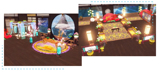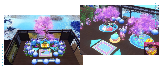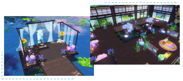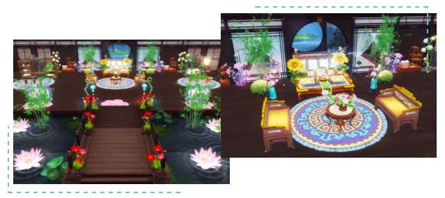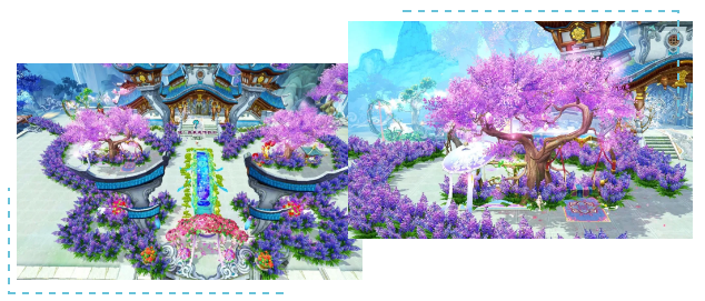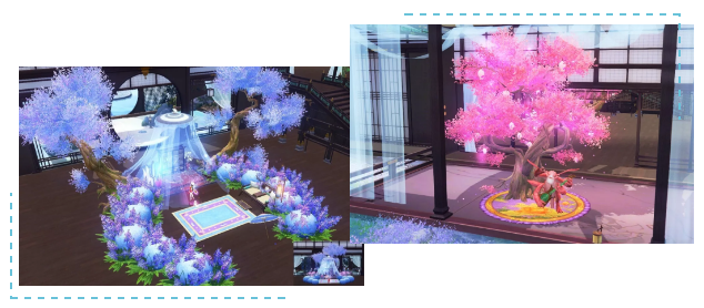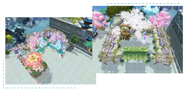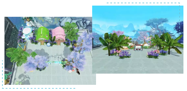 10级家园要怎么装修? 装饰物摆不下了怎么办? 倩倩对着自己的小茅草屋陷入了沉思… 听闻三界最近有位设计师擅长装修经济适用房十级家园也能够摆出超多花样! 事不宜迟,倩倩决定立刻去拜访高人 10级家园装修攻略 作者:游园惊梦—ゃ.奶不住.° 大神id:云随雁隐 整体分区 妖灵家园场景大致可以划分为:门口,第一层,第二层,第三层,账房,后院,正屋七部分。此次以10级家园为代表进行装修说明。 10级家园使用天机璇玑珠后可提升80个摆放上限,最多可摆放497个家具。装修前可在脑内构思好装修思路,即设定为什么区、大约多大、使用哪些家具为主。通常可将室外以个人喜好分为待客区、儿童区、休闲区、娱乐区等等。 分好区后可对各区域内所需装饰物进行大概预算,否则容易导致装修进行到一半,家具使用已近上限。因妖灵家园过大,建议将装修重点放在门口及进门后的三层。 区域布局 门口的圆台左右两边各有一棵大树,圆台分内圈和外圈。该部分装修建议以圆台内圈或外圈为区域进行围圈装修,因两棵夕雾树本身自带的蓝色亮光效果,建议以蓝紫绿色为基调进行装饰。 台阶后,入眼是一个红色树池,可使用喷泉或小型矮木或花草稍做装饰。 第一层左右可设置为待客区,休闲区等。待客区主要的家具应为桌椅,所以理论上建议场景的布景区域略大一点,花木适量,注意留白,使用的花木在颜色上尽量保持同一色调,且应有一定比例的绿色植物景观。 休闲区则为软榻,秋千,温泉池等一类休闲互动家具为主,花木小景类为辅。 第一层和第一层正台的连接台阶稍显空旷,可按自己的喜好习惯摆放一些花木丰富一下画面。 第二层正台内宽阔且无任何景观,最好发挥。装修建议两侧区域,中间尽量不遮挡住眺望第三层正台的视线,如在正中摆放有小景,则小景两侧的留白可大一点。使眺望远处美景时视线不受阻挡。 设置休闲区,则可使用和春住,各式秋千,休闲桌椅等为主家具,再根据自己偏好的花木颜色小景配合所需造景。 儿童区可使用儿童秋千,跷跷板等一类儿童家具,颜色可选用儿童偏好的粉嫩系如淡紫,浅蓝,粉红等一类,再使用小型绿色花木如蒲葵芭蕉等来中和色调。 动物园则可使用猫龛、熊猫小屋一类为主要家具,颜色可按个人喜好决定。可使用大型树木配合同款或类似的小型树木造景。 第二层和第三层的台阶下有溪流,阶上有门柱。此部分可按喜好选择是否摆放树木填充画面。第三层接连正屋的门口处有两个花台,可摆放较葳蕤的花木将花台填充满。 第三层左右两侧可摆放上温泉池再用花木半围起,设置为半私密性的休憩区。亦可摆放上戏台子做成一个家用娱乐区。 颜色搭配 关于颜色搭配简单的说即为融色,颜色冲突恰当的可说为撞色,颜色冲突糟糕的就是土气了。且容易使画面杂乱无章。让人感觉烦杂。 妖灵城目前使用最多的花木应是薰衣草,原因有三: ①妖灵城画风为水墨风,植物多为蓝紫,与薰衣草能很好的融合在一起; ②薰衣草植被覆盖面广,尤其是大型,使画面饱满; ③薰衣草的紫色不过亮也不过暗,在画面过暗时它可用来提色,画面过亮时它可用来压色,使画面整体达到一个统一度。 如下图,则薰衣草是用来压色的。淡粉色的树和浅紫色的树,都使画面显得过于“轻浮”,用深紫色的薰衣草压色使画面饱满沉静。 想象少女在前面秋千上悠悠荡荡,少年则斜倚着秋千树坐在木桩上听着蝉鸣,见景见音不见人。阳光正好,树荫正好,一副青梅竹马图扑面而来。 可大面积使用的作物推荐: 花卉类:鸢尾,薰衣草,紫藤,绣球,虞美人,向日葵 树木类:蒲葵,湘妃竹,松树,龟背竹,芭蕉 蔬果类:葡萄,木瓜 灵植类:棠夏,箭竹,栾华树,折春,夕雾,清璃树,澄明树,芳辰树,幽夜树 小景搭配 家园装修中使用较多的是盆栽和小景,小景一般配合盆栽使用。 如下图,以青萝小屋为主。为使画面生动起来,在远处摆放一个猫龛。两只小白猫蹲在光阴斑驳间的林园深处。妖灵赠情中的喵喵击节叹(辛十四娘赠)亦可使用在此场景中为画面增色。 如何妙用小景亦需多多尝试,惊喜总在不同的尝试之后哦。如在使用了勤和家兴后,场景内则不必再使用其它灯类来点缀,因竹门内外侧已挂有两排共8只灯笼。 坐骑妙用 坐骑为动态,在静态的场景中放上一两只合适的坐骑会使场景生动起来。如下图所示,门口的树是果树,在树下加一只眼巴巴望着树上果子的小白鹿,造出一个鹿吃果的情景。画面便会变得比原来生动。 坐骑的使用需考虑画风统一,不使画面有突兀感,符合其使用的场景即可。 无论如何装修,最后的目的一定是让主人欢喜愉悦。所以喜爱是唯一的标准。在此标准上使之达到美,就是完美的装修了 。希望每个小可爱都能找到自己喜欢的方法去让家园变得更美丽舒适。 小姐姐的家园装修攻略干货满满倩倩的10级小草房也要这么装修! 看完室外装修不如再看一下另一位设计师的室内装修~ 家园室内装修 via贴吧-肥兔摘星星💞 分享一下14级家园的室内装修,14级的室内还是比较大的。在水池区域可以摆放莲花、树,用屏风+花木类盆栽做的隔断,在边缘区域摆放一些灯。 如果家具没那么多的话我个人比较喜欢用花草代替~外面的台子摆放也比较简单。 第二层也很大,中间放的衣柜,左边会客区,右边卧室,大概就这么分布的。整体的效果图,我在第二层放了很多玫瑰盆栽,很亮很闪~ 其实室