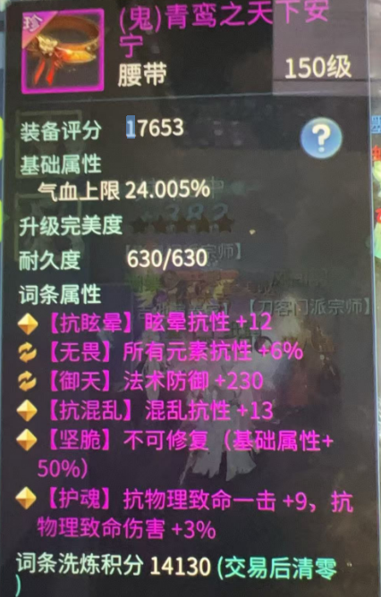 倩女幽魂手游:四种有效属性齐聚一腰带,五混抗、四命中信手拈来!