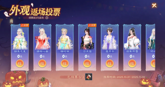 金沙镜的乌木小妖在沉香古木下拾得了一片回忆之叶: 记忆的主人是一位异乡人,他带着一颗神奇的金南瓜来到中原,每当夜幕降临,这颗南瓜便会散发温暖的光,传说它的光能为人们驱散噩梦。但突然有一天,异乡人回到家中,却发现南瓜不见了,而噩梦却在村中蔓延…… 这段回忆到此戛然而止,乌木小妖们好奇金南瓜的下落,想凑齐所有与异乡人和南瓜有关的回忆。但时过境迁,许多事情连老树也不能知晓全貌,于是乌木小妖们前往三界各地,希望寻找到与金南瓜有关的线索! 当然,金南瓜的存在也吸引了不少觊觎它的邪恶存在......帮助乌木小妖,守护金南瓜,可少不了各位玩家伙伴的帮助!快跟着菌菌的脚步来看看这场幻夜里到底有什么奇妙的玩法吧~ HALLOWEEN 噩梦退散 乌木小妖们找到了金南瓜,却发现金南瓜吸收了太多噩梦,被噩梦反噬,幻化出了噩梦领主! 10月31日—11月16日期间,小伙伴们可组队参与噩梦退散副本,帮助阿乌们击败噩梦领主,换三界一夕安宁美梦。 *本次【噩梦退散】玩法对boss噩梦领主的模型进行了大更新,将给小伙伴们带来更加身临其境的体验! 噩梦领主模型 ?技能展示 玩法奖励 首次通关普通模式与英雄模式将获得好梦积分+10; 每日通关普通模式,将获得幻灵好梦礼包,好梦积分+10;英雄模式更有队伍伤害挑战好礼等你来拿! HALLOWEEN 夺瓜奇兵 天选勇者,夺瓜争先!变身阿乌的大乱斗活动来喽! 潜伏着的恶念乌木妖,趁着众乌击败噩梦领主的瞬间偷走金南瓜,藏匿在迷雾森林,乌木小妖们争先恐后前往搜寻! 10月31日—11月16日 12:00-23:30期间,30级以上的玩家可以通过单人或多人组队匹配的方式参与【夺瓜奇兵】活动,小伙伴们将化身乌木小妖,装备特殊技能,通过收集南瓜或击败对手获取经验,夺回大南瓜就看你们的了! 使用特殊技能 收集南瓜涨经验 击杀对手涨经验 *当经验满足升级条件时,乌木小妖将进阶为更加强大的阿乌,并随机获得一个新技能,被击败将失去一部分经验。 阿乌升级 *价值大量经验的金南瓜将于第2分钟在地图中央刷新,同时外围的小南瓜将停止刷新。小伙伴们需要前往争夺金南瓜并保护金南瓜到最后! *注意:金南瓜将在被击败时掉落,可在地图中查看金南瓜位置。 玩法奖励 参与夺瓜奇兵玩法将获得好梦积分+10,玩法结算时,排名前三的小伙伴将获得金风绮梦礼包! 累计获得五次前三名还可额外获得金风绮梦礼包哦~ HALLOWEEN 筑梦奇旅 金南瓜终于在大家的努力下被夺回,阿乌们将它种在金陵城的水池中,但很快你们发现,只有用曾经美好的记忆浇灌,金南瓜才会散发出驱散黑夜的力量。 本次幻灵奇妙夜活动期间,玩家们将体验到世界收集事件【筑梦奇旅】下夜晚的金陵城,并收集散落各地的回忆之叶,再次点亮金南瓜,让好梦伴随每一个人~ 10月31日—11月16日【筑梦奇旅】活动期间,参与一条龙,师门任务,重温剧情,关宁校场,帮会大盗,帮会货运,宝图任务,即有机会获得香甜南瓜和回忆之叶~ *受噩梦领主影响,金陵城在活动期间每日22时—次日7时将被黑夜笼罩。 *主城金南瓜将根据玩家的收集进度出现奇妙的变化。 HALLOWEEN 时装返场投票 本次返场投票活动将有十二套时装参与投票,另有两套材质迭代后的神秘时装直接参与返场! 返场投票时间为 10月31日10:00—11月9日23:59 返场上架时间为 11月10日10:00—12月17日23:59 投票要求: 所有等级达到50级的玩家初始拥有3次投票机会,风尚度位于本服排行前100的玩家初始拥有5次投票机会; 投票规则: 本次返场为全服投票,所有服务器玩家投票数据同步汇总并显示,男女角色为同一票池,累计投出2票即可领取配饰【传佳音】; 返场规则: 最终票数前三的时装将于11月10日上架灵玉商城。总票数排行1/2/3名的时装价格将分别为1588/1688/1788灵玉; 神秘时装惊喜返场! 本次返场将设置两套材质迭代后的神秘时装,不参与投票,与投票时装同步上架,小伙伴们敬请期待吧! HALLOWEEN 顺风车来啦! 骑上我心爱的小摩托,它永远不会堵车~南瓜顺风车坐骑驾到,多色坐骑带起缤纷的糖果轨迹,专属南瓜精灵随从紧跟身后,万圣街头畅行无阻~ 本次顺风车坐骑盲盒上架商城,小伙伴们可在商城购买盲盒后随机抽取美团瓜(30天),宅鲨送(30天),闪送兔(30天),饿了哈(30天),柴乐送(30天),狸速达(30天)等其中一个坐骑;璇玑阁则可兑换顺风车坐骑自选礼盒(永久)! 编辑:月光下完美