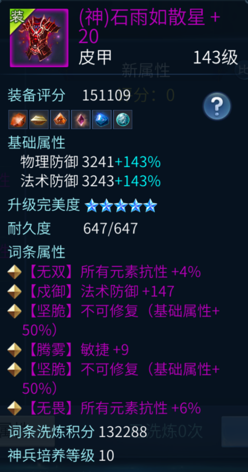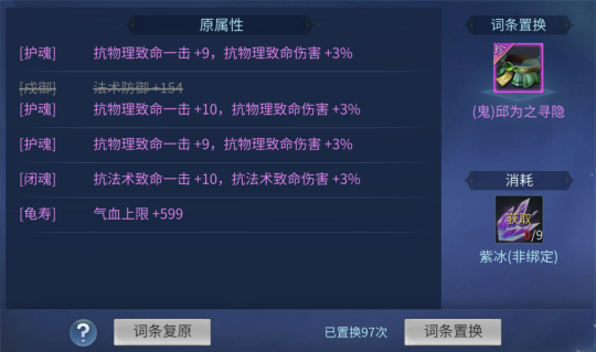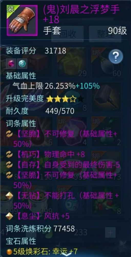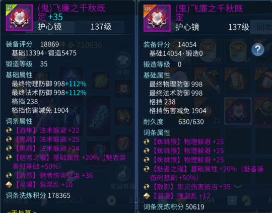 前几期牛图投稿中登场的69级三五十手套,想必不少人还留有印象,本期菌菌收到了同样是三五十词条的89级鬼装手套,有这件装备在手,想必能为角色提升数千血量。 - 来源:投稿@暴力小阿兔*_ - 综合性装备虽然不及针对装备作用突出,但胜在性价比较高。这件固定三敏捷+根骨的137级鬼装鞋子,仅用1399分便洗出了7绝5敏捷词条,对于想走双躲路线的小伙伴来说,作用不俗! - 来源:投稿@、ぃ◇-月亮ァ - 何以解忧,唯有抽冰神之一手!小伙伴一发词条置换,精准地将这件109级腰带的法术防御词条,替换成了第三条抗物理致命,这手气菌菌真是羡慕啊! - 来源:投稿@唧唧` - 本期牛图又迎来一位洗炼届的欧皇!这件143级紫装皮甲,在固定位已经有全元素抗%+不修的基础上,竟又追加了一条不修与全元素抗%,这样的词条组合在三界也是稳居前列的存在! - 壮志凌云@发发啊 - 这件装备同样来自上一位小伙伴,150级鬼装笛子的固定词条已经堪称完备,携带了最大、不修、罪医以及影灵之神4条关键词条,后续小伙伴持续发力,耗费1346152洗炼分,最终拿下了7绝高数值最大+克制的武器。 - 壮志凌云@发发啊 - 这把武器的运气同样非凡,109级鬼装武器,在原本灭侠、最大与侠客之魂的基础上,又添一条最大,菌菌在这里恭喜小伙伴喜提门派硬核装! - 来源:投稿@暴躁大土豆 - 之前和大家分享过毕业级137级鬼装法躲护心镜的小伙伴,本次又传来好消息。据小伙伴描述,这件集三物躲、魅者之曜、散影与强混乱于一身的护心镜,正是吸取了之前做法躲护心镜的经验,仅用5万多分便成功拿下这件高数值成品。菌菌掐指一算得出结论:经常投稿牛图的小伙伴,欧气必会延续,鬼装来,鬼装来,鬼装从四面八方来~ - 来源:投稿@大明湖畔猪刚鬣 - “转职前一夜,系统和我开了这样的玩笑......”这把琴扇的投稿经历,当真有“重生文”的感觉了。 小伙伴表示,自己有一把固定双攻速+随机1攻速的武器,想着在转职前再抽下看看,没想到上午抽出一条攻速+10%,晚上竟然又抽一条攻速+10%,此等好运也是在转职前夕被小伙伴接住了! - 来源:投稿@扶苏ヾ - 编辑:月光下完美