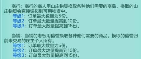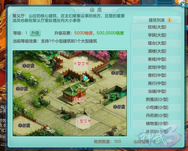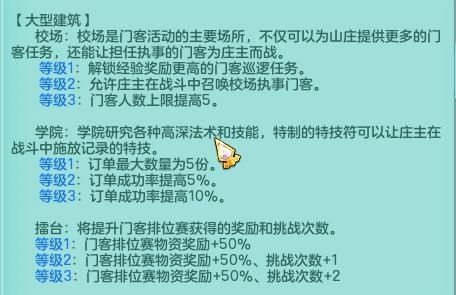 一、当玩家等级达到100j的时候就可以去建造属于自己的山庄了: 山庄是由5个人组成的,可以自己拉上自己的小伙伴,也可以用自己的小号。 1.山庄的建立,花费500万信誉或者300金币建立属于自己的山庄。(名字一定要想好 因为第二次修改要花1000金币)。 2.山庄建立后我们需要拉拢自己的4个小伙伴进入山庄,因为多一个庄主,每小时的物资产量是不一样的。 3.当这些准备就绪后,我们需要将山庄升级,一级山庄是有俩个空地的选择。 俩个空地的选择看根据实际情况来选择,大型空地可选择校场、学院、擂台、酒楼。 看根据自己实际情况选择大型建筑的选择、笔者推荐建立擂台、或者校场(前期物资产量有限只能通过排位赛和做任务来获取物资,建立擂台是为了增加物资产量,后期可以根据实际情况拆了。)刚建立山庄会赠送你5个普通门客,记得每天都去打下,一天三次机会。 4.小型建筑的选择: 小型建筑可根据具体需要,选择山庄的建设,喜欢PK的附魔店优先建造、然后升级建筑,升级到二级山庄。 二、二级山庄的打造: 山庄升级到二级后,多了一个小型空地和一个中型空地,我们可以考虑将小型空地建造出适合自己的,笔者选择了丹药房可以提升三药的品质,上线是160品,可根据实际情况选择, 一级建造的擂台可以考虑换成酒楼(酒楼集齐12传奇门客后也可以考虑拆掉,选择适合自己的大型建筑,这时候酒楼的价值就没有那么明显了。),因为二级山庄后物资产量比一级的有了明显的提升。 中型建筑的选择: 二级山庄的这个中型建筑笔者建议建造客栈(可以通过客栈获取著名门客) 通过客栈增加自己的门客数量。 三、当山庄升到三级后,可以根据自己的实际情况来选择山庄的建筑。 喜欢pk的可以根据自己的情况,把小型建筑建造附魔店、小吃摊、 丹药房。缺经验的小伙伴可以将中型建筑建造武馆,缺信誉的小伙伴可以建造当铺,山庄物资数量的不够可以建造商行,需要练宝宝的小伙伴可以建造兽栏。没有12传奇门客的加油努力每天去酒楼看看,愿尽早毕业,酒楼可以考虑换成学院。 以上内容为玩家观点,仅供大家参考,不代表《神武3》官方立场。 |
