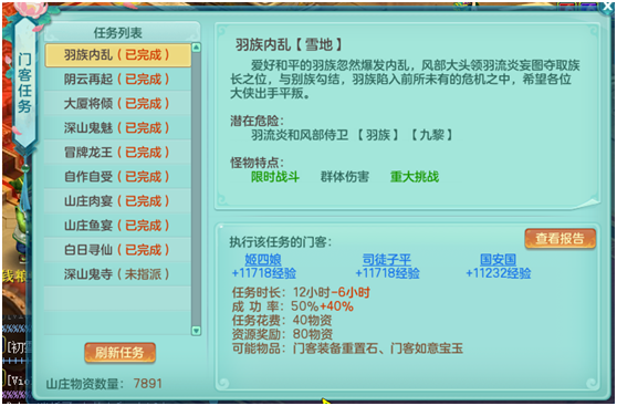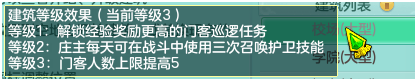 首先需要建造一个山庄,个人发现 刚建造的时候没有称谓,聚义厅到达一定等级以后才有称谓挂。 貌似是二级。 想要快速升级建筑的话最好自己和朋友一起进来打理,或者像我这样开自己小号打理,大庄主可以邀请好友度≥1000等级≥100的好友入庄,一个山庄可以容纳5个庄主。(其他庄主不需要互为好友,对除大庄主以外的人互相友好度也没有要求) 建造山庄主要作用是 1.有门客用 2.可以加工12x酒变成13X (最高品,加工加1X) 3.可以加工药品至最高品160,灵心最高没有,大概155是这样。 4.加工附魔f等级 而想要强化门客和练这些药酒需要消耗物资和个人信誉。所以建议多人建造山庄,每天进行打理。 二、山庄日常打理介绍 每天只需要进入聚义堂, 1、点击师爷将累计物资入库,必要建造建筑的时候存入信誉,这时候就是小号加入进来的好处了,消耗小号的信誉用于后续建筑 2、点击门客统领。 ①(每日每人必点)查看现有门客-----》接纳门客 (每天第一次点击统领都有可能有门客出现,低级时所有不管声望是著名还是普通都接受进来,以便第二个选项安排门客任务),传奇的门客一般需要完成任务才可获得,也就是后续建筑获得。 刚开始每日点击查看现有门客接收所有类型门客,数量达到一定时用传奇与著名将普通进行替换。 ②(每日每人必点)门客排位赛 每天会有三次机会可以点击,不管输赢都有物资领取。赢了80,输了40 ③.(每日每人必点)安排门客任务 任务列表的人物旁边有黄色星星的奖励会更高,建议先安排星星任务。 点击安排门客 可以看到这个界面,紫色的说明门客擅长,成功率或者物资或者任务时长会加成,黑色的说明不加成,所以优先选择完紫色的。 如果点击一项以后其他项目变成绿色,说明绿色的项目加成过已经无法加成, 应继续选择紫色或者黑色较多的一项。(注意右上角需要人数) 三、山庄建筑选择建议 建议刚开始可以先建筑加成物资的建筑(擂台),等聚义厅到达最高级3级以后再拆除建筑其他。 建议的建筑: 1.校场(门客出场使用) 2.酒楼(能偶遇传奇门客) 3.丹药房(加工药品) 4.小吃摊(加工烹饪、酒x) 5.附魔店(加工附魔等级) 四、传奇、著名门客的获取。 任务在酒楼领取,建筑酒楼以后, 进入聚义厅内的统领处每天点击可能会有提示说去酒楼一趟,即可接收任务。酒楼需到达一定级别才可获取任务。 各种建筑周围经常会有自己家的npc门客在逛街,可以点击查看,有些会接到任务 完成获得著名门客。 在客栈也可以获取著名门客。 以上就是我对山庄这个玩法的经验,希望能帮到大家。 |