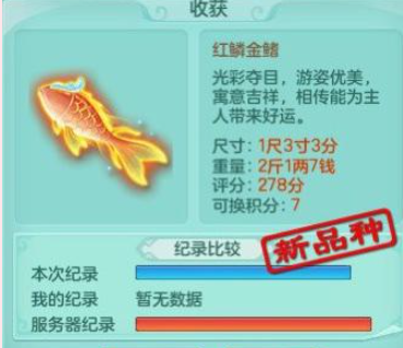 这位玩家恐怕是真的锦鲤,刷了几周,终于出了,太不容易了;而其他玩家这基本大半年都不会出,钓不出根本钓不出,这个比鱼王难钓一倍以上,可能养太少。