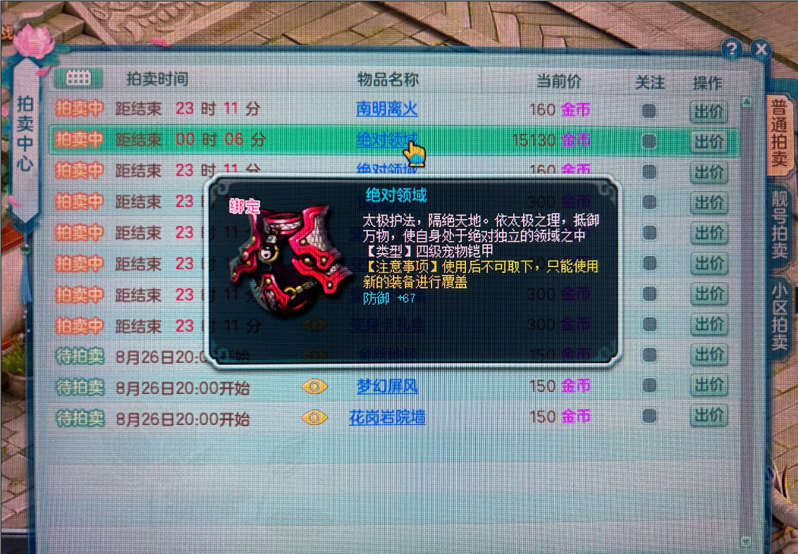 今年勇的67铠甲,七窍前段时间也有一个67的护甲,最后拍了多少,不知道了,烧烤的时候看,已经有15000了。血赚15000铠甲齐了,缺一个53以上攻击,再追出3个26主属性就潜龙了。 有事没事就玩幻唐志: