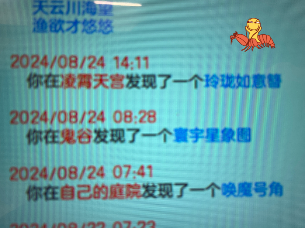 1、玲珑如意簪触发地点:天宫【嫦娥附近】线索:夜色皎皎白玉轮,疑似仙女降凡尘,捣药伐桂奔月去,只留簪子不见人。这个秘宝手机也可以挂,上线走两步就可以,比较容易刷。 2、远古海螺触发地点:傲来国【钓鱼区域,钓鱼状态,晚上,天气雨,三个人一起钓鱼】线索:雨夜声声起,出门觅觅寻,临海闻螺音,垂钓三人影。特定天气触发率不高。 3、琉璃鹿角触发地点:鬼谷【靠近鹿的时候概率触发,鹿途经的几个地点均可】线索:云梦山间飞鸟出,溪水潺潺赏白鹿,忽闻草动惊兽起,空余琉璃不知处。出光触发率一般,成功率一般。 4、绛红龟背触发地点:庭院【有坐骑(赤背龙龟)自己别人都行,雪/雨夹雪】线索:大雪纷飞,红甲赤背,雨过天睛,又长一岁。这个需特定坐骑,天气有了,触发率较大。 5、金击子触发地点:五庄【人参果树下(明月),子时,动作(行礼)】线索:本是镇元气,千年化果来,施礼向明月,娃娃笑开怀。出光率一般,有时间就去蹲。特定时辰,出光率一般 6、孟婆汤触发地点:地府【全图,晚上】线索:红尘六欲皆迷茫,忘忧黄泉化作汤,老妪笑迎四方客,浑浑噩噩站桥上。这个必须得靠老头那查询。出光率一般,成功率一般,不在乎钱的可以晚上就去逛,间隔2时辰,然后再去老头那查询。 7、点将鼓触发地点:天策【程夫人附近,白天,动作(攻击)】线索:白日晒,将军府里歌豪迈,鼓声响,美人面前变刀枪。有时间就去那攻击,出光率一般,成功率一般。 8、芙蓉金鲤触发地点:普陀卯时【中间莲池附近,卯时】线索:清水出芙蓉,凡鲤欲化龙,南海池中越,破晓逆水游。有时间就去逛,出光率低,成功率一般。 9、熔炉之心触发地点:寒渊城【欧铁心,携带灵光兵书,动作生气,午时】线索:雪城炉冷影锤动,金尖交击影无踪,乌石百炼方成铁,灵光兵书录其中。特定时辰,特定物品,出光率一般。成功率一般 10、龙魂灯触发地点:庭院【晚上,雾天,亥丑时,装饰(石制院灯),动作(施法)】线索:黑夜月,庭中雾,小桥流水石灯处,结法印,龙飞舞,天地变色真型出。特定时辰,出光率极低,成功率极低。 11、鲲骨触发地点:北冥【白天,全图,携带蛟龙、凤凰】线索:极北寒天,鲲鹏振翅,龙飞凤舞,秘宝现世。建议晚上在寒渊用完星图,白天这逛后再去老头那查询,有2处秘宝可以有概率触发,出光率低,成功率低 12、千年桃花酿触发地点:庭院【晴天,种植桃树,装饰(酒葫芦),未/申时,动作(坐下)】线索:桃园种桃树,树下赏桃花,闲庭花下坐,白日酒香飘。特定时辰,出光率极低,成功率极低。 13、寰宇星象图触发地点:鬼谷【观星台附近,亥时,动作(坐下)】线索:人定议奇谋,观星海,解千愁,俯身落座,千古空悠悠。特定时辰,出光率低,成功率极低。 14、不灭明火触发地点:魔王寨牛魔王面前火炬【龙魂灯】线索:魔王降世引真火,龙魂尽出镇牛魔,手中无宝亦无法,四海亲朋皆相助补充:别人使用也可以触发且需要在一个队伍里。出光率极低,成功率极低。 15、兽王印触发地点:寒渊城【寅时,使用寰宇星象图,全图触发】线索:虎啸日将出,寒城萧瑟天星疏,众将破敌胆,沙场血战几人还。补充:别人使用也可以触发且需要在一个队伍里。特定时辰,出光率低,成功率低。建议和北冥图这起去查寻。 龙魂灯之后的所有秘宝,失败积分50,成功积分100,一天最多拿150积分,建议后期刷积分就刷龙魂灯以及后排的秘宝。 |