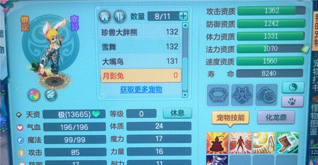 大半夜的出个满技能 食之无味,弃之可惜,可以考虑当个盾宠,想要下盾的在洗新的,这BB特容易被集火。攻Z吃满,防御吃和血吃到一样。磐石,高神,高强力,高防御,高机智或者气势,HF小技能审判或者感知,直接全力加点。 下卡速就经量机智加感知,下法宝宝和法辅孩子就气势加审判,你要急着用这宝宝就只能这样打,全力加点的情况和高ZZ的全力加点伤害不是很明显,你这锤子3围太差最不了细节,血攻那种就不要想了,高防御加不屈能抗个破血没问题,神一下就血赚。如果就想追细节觉醒加满果子那种那就建议你继续洗吧! |