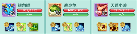 《幻唐志》小伙伴演武稳过阵容分享,如果有更短回合阵容的大佬,欢迎分享,要求是稳过! 第一关 鬼磷火,白色小松鼠,第三只随便 第二关 绿草芽,黄色雏鸟,火凤幼鸟 第三关 刺猬,白眉青狼,黑鬃猪 第四关 银角蟒,寒冰龟,天蓬小帅 第五关 鸡冠蛇,银角蟒,银角蟒(回合数太多,急需新阵容) 第六关 虎先锋,白眉青狼,天幽狐/刺猬(没有虎先锋就有点看对面心情) 这6关除了虎先锋(限时活动获取)鸡冠蛇(长安外钓鱼获取)其它基本能在野外抓到,天蓬获取不难。 1威吓,2热浪,3召唤白松鼠,4妖雾,5点燃,6,7,8都是点燃,小松鼠掉了直接换鬼火,热浪收尾,不行就召唤第三只收尾; 1影遁,2待命,3,4打击,下掉第一只人族,对方第二只放天气后雏鸟再跟,别一上场就放天气,后续连击下掉。雏鸟还活着就鹰击躲第三只的冲撞,后续连击下掉; 1妖雾,2召唤白眉,3魅惑,4销魂,5镇魂曲,6销魂,7妖雾,8踩击,9刺猬掉,上黑猪,踩击,10踩击,11冲撞; 1拍击,2天气,3召唤寒冰龟,4祈雨,5戏水,6,7,8戏水下掉第一只,9召唤银角蟒,10天气,11召唤天蓬,12汲取,13连环,14连环,小黑果血量850以下就山崩收掉。再召唤银角蟒,天气顶掉妖雾。点灯加天气回血比对方打的还多,慢慢a掉就好(这里银角蟒最好是升紫,我还没试过橙色打,不知道会不会翻车)。 教你速杀第一只鹰眼鸟。人家技能是连环,让河畔小守卫妖雾然后上反甲,3回合内反死它。只要在第三回合出了反甲,那有时候就是第三,第四回合,鹰眼鸟就被反死。还能反甲第二只一次。 运气不好,那也是第5回合反死鹰眼鸟。 穷奇每半月刷新种族,这个阵容影响不大。1妖雾,2影遁,3待命,4召唤白眉,5销魂(这里如果穷奇刷出治愈之雨,马上跑)6召唤刺猬,7销魂,8妖雾,9召唤虎先锋。注意11,还是12回合穷奇会释放愈战愈勇,可以视情况,吃第一下愈战愈勇,影遁躲掉第二第三下5次愈战愈勇的伤害,不过一般11.12回合就能收掉穷奇。 |